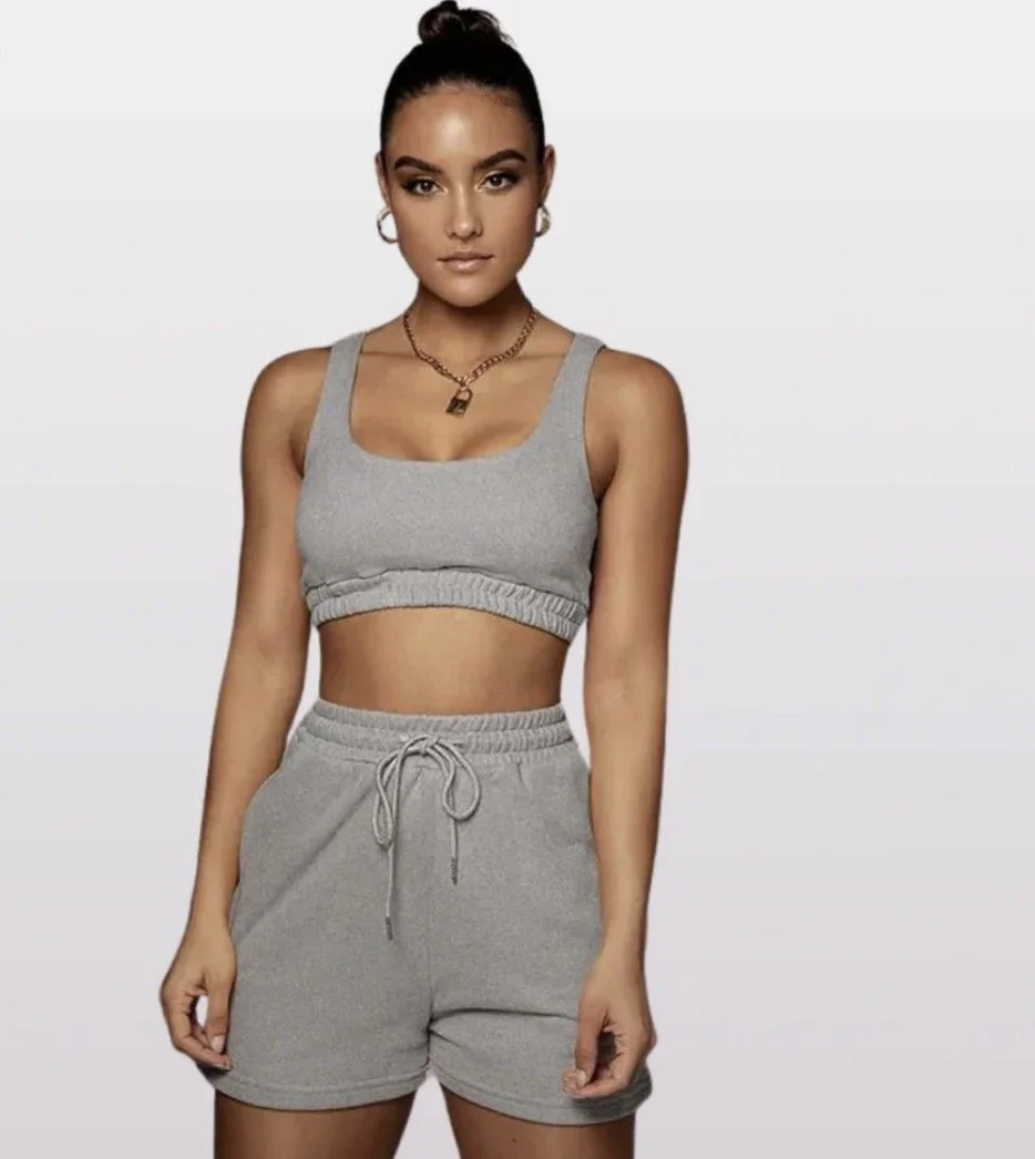 Ladies crop top two-piece plus drawstring shorts