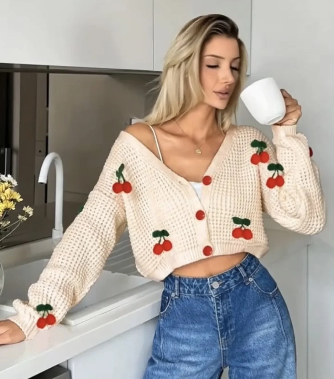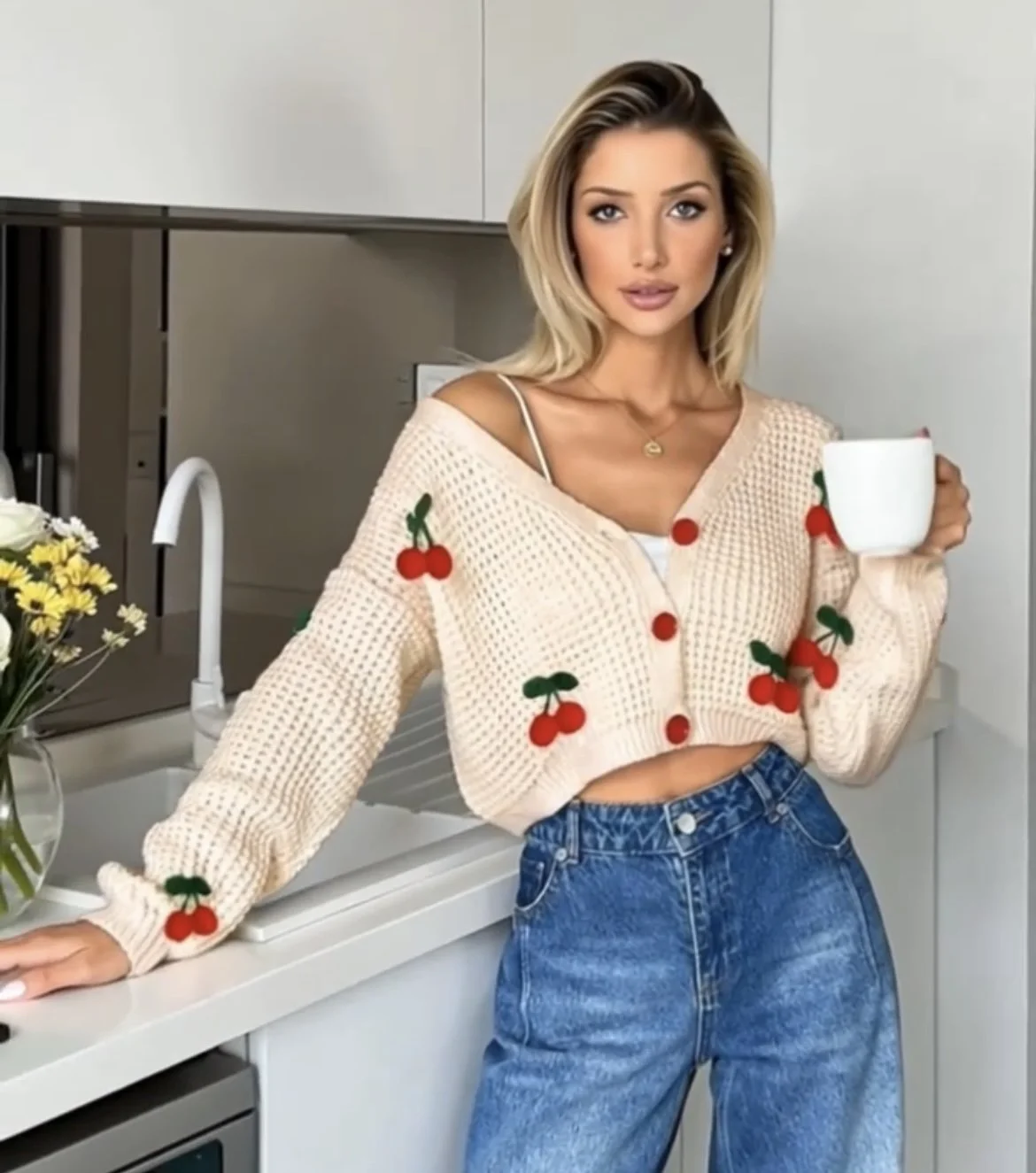 Add a pop of fun and sweetness to your wardrobe with this adorable vatina red cherry sweater where charm meets timeless fun and elegance. Designed for effortless style, this piece captures the spirit of fun while keeping you cozy. The bold cherry motif adds a touch of sweetness to the vibrant red base, making it a standout piece in any wardrobe. Crafted with soft, breathable fabric, it’s perfect for layering through transitional seasons or wearing on its own for a statement look. Pair it with denim for casual days, skirts for a feminine twist, or layer under outerwear when the temperature drops.